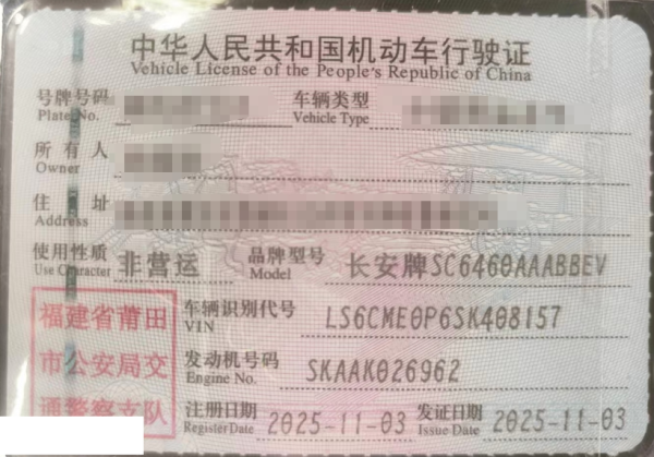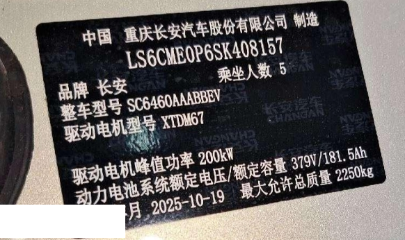 初次登记日期 2025-11-03 车辆名称 深蓝汽车 深蓝