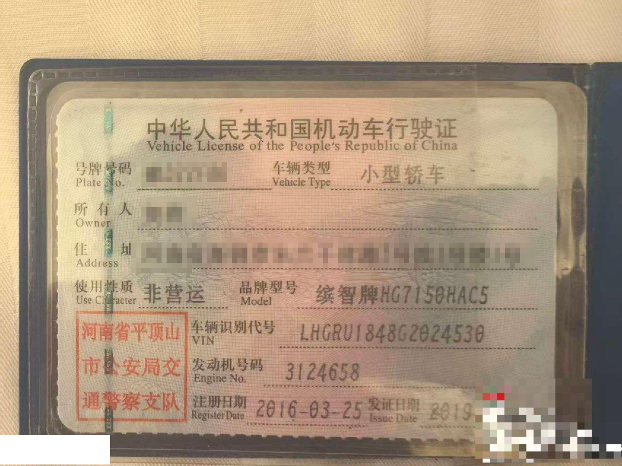 车牌号 豫****** 品牌 本田