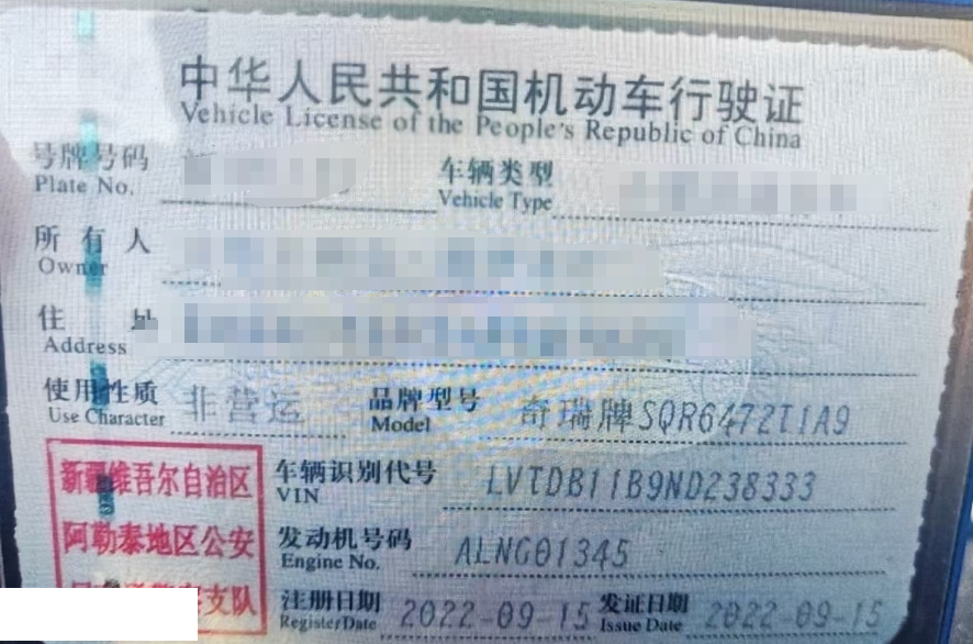 初次登记日期 2022-09-15 车辆名称 奇瑞 瑞虎8