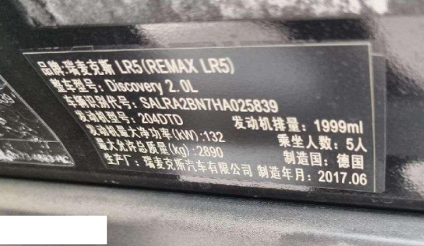 初次登记日期 2018-03-22 车辆名称 路虎 发现