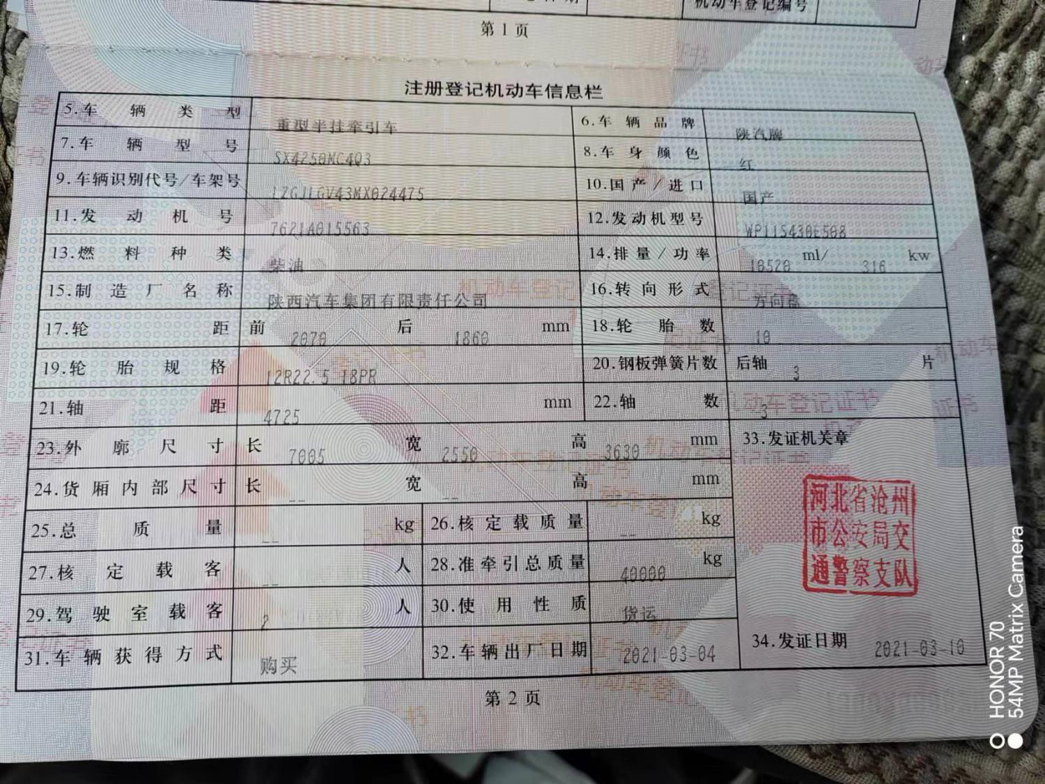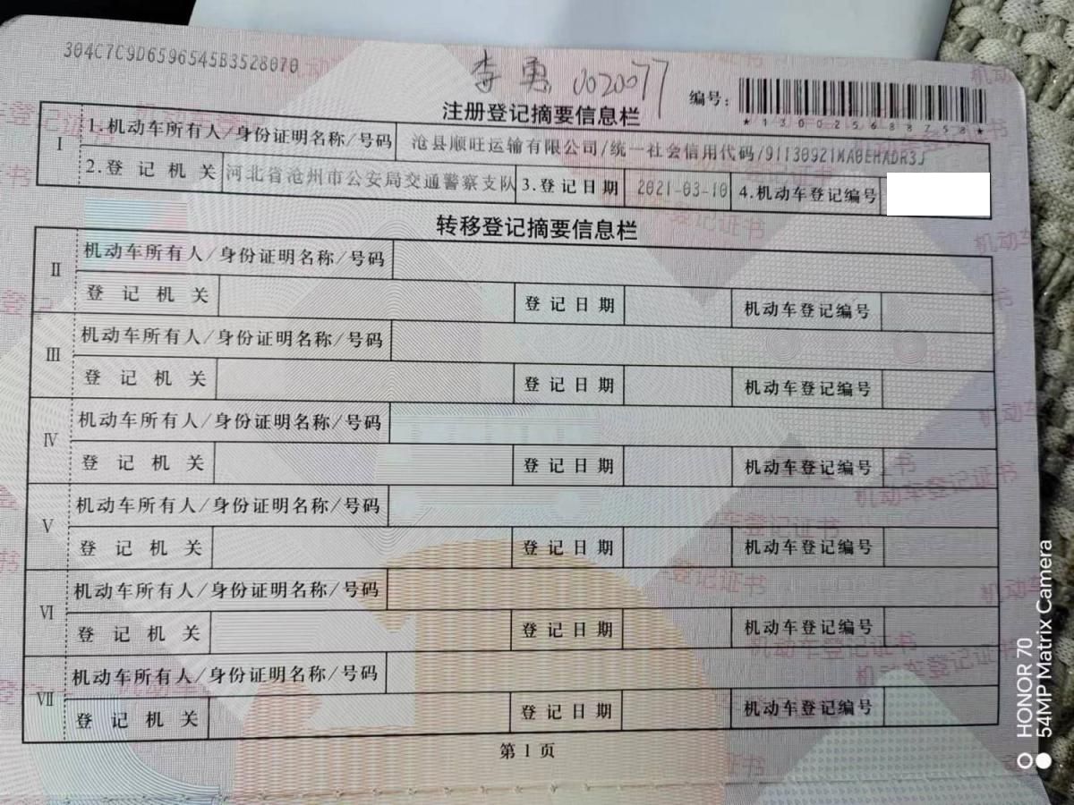 车牌号 冀****** 品牌 陕汽牌