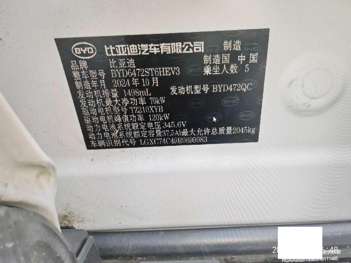 初次登记日期 2024-10-28 车辆名称 比亚迪 海狮05