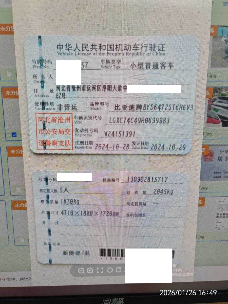 车牌号 冀****** 品牌 比亚迪