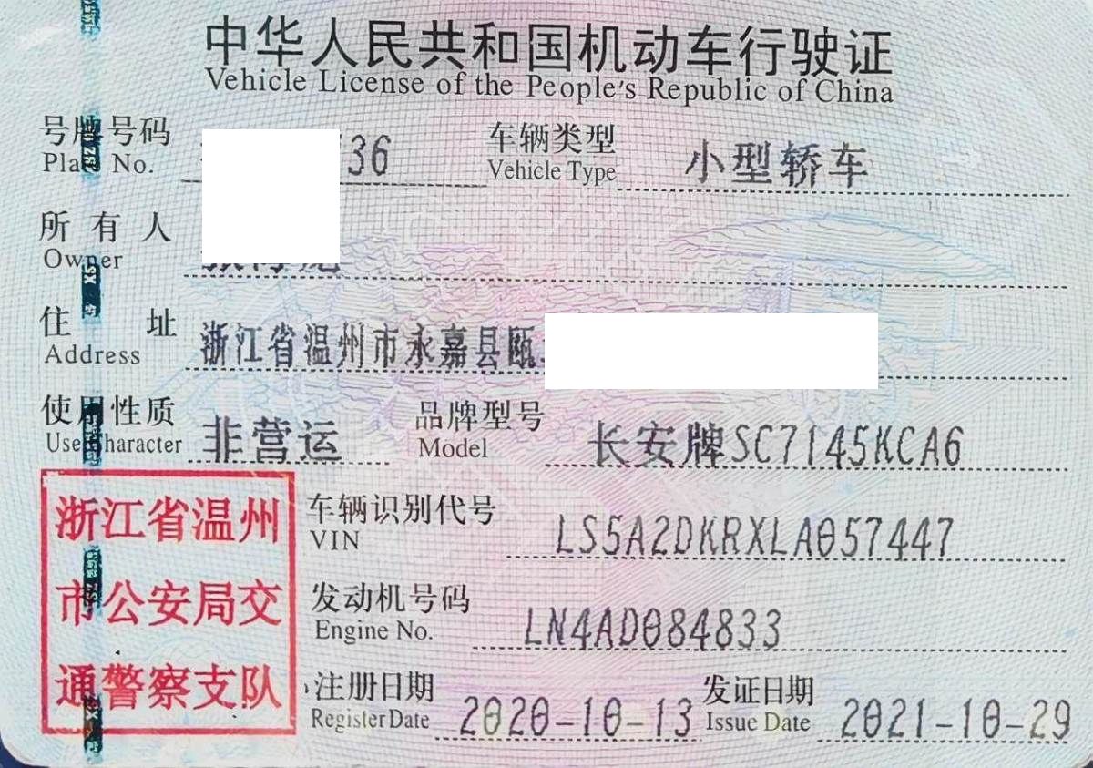 车牌号 浙****** 品牌 长安
