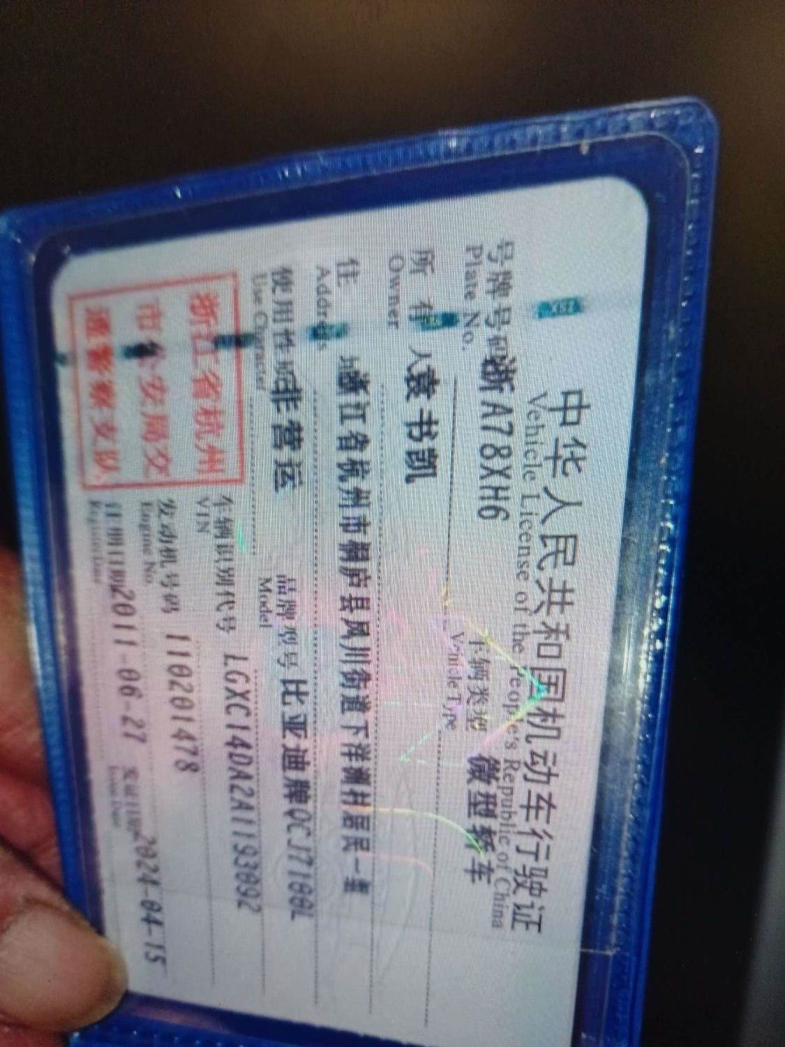 车牌号 浙****** 品牌 比亚迪