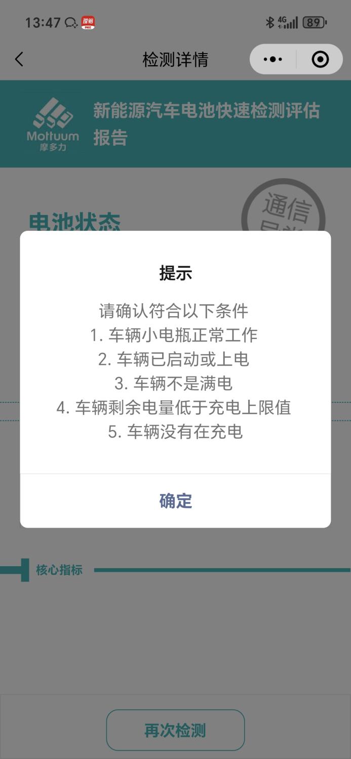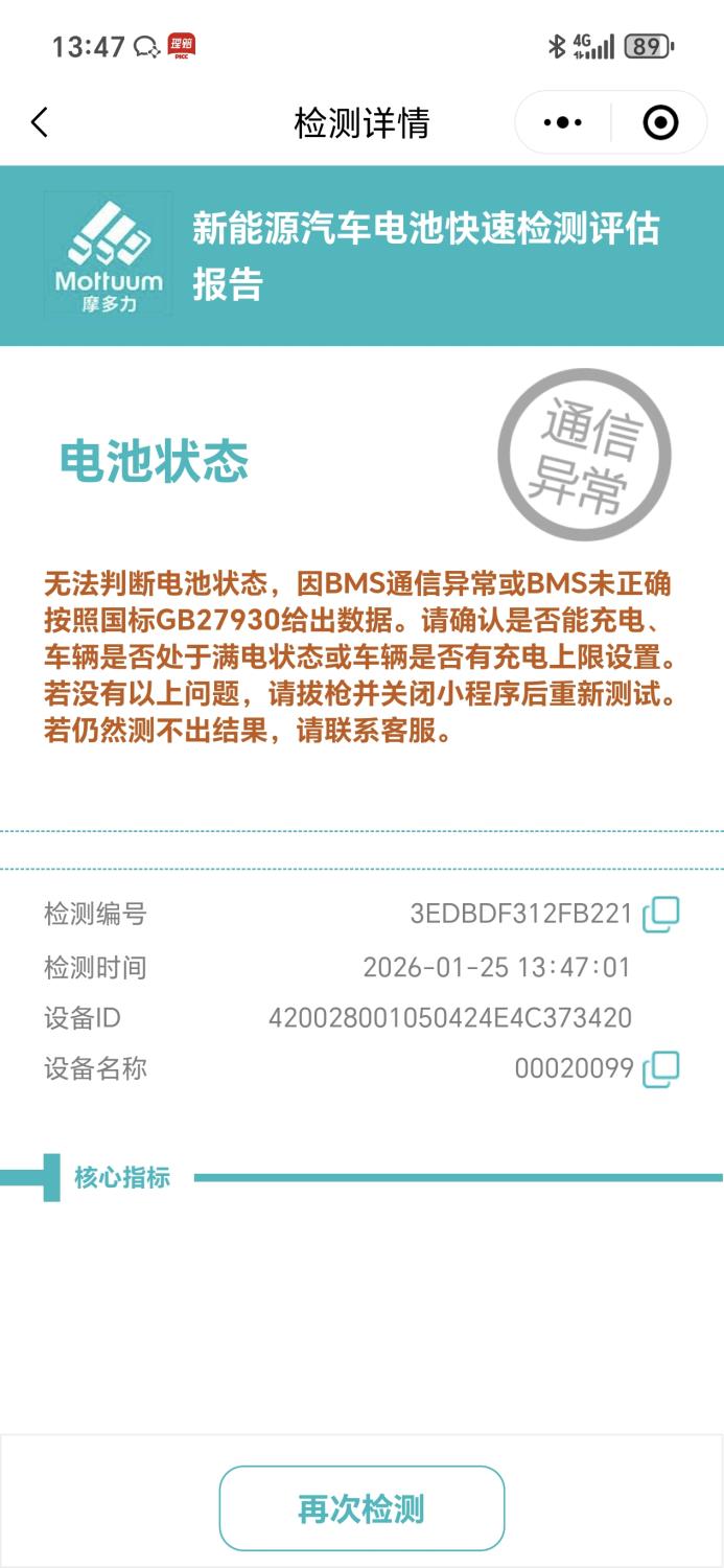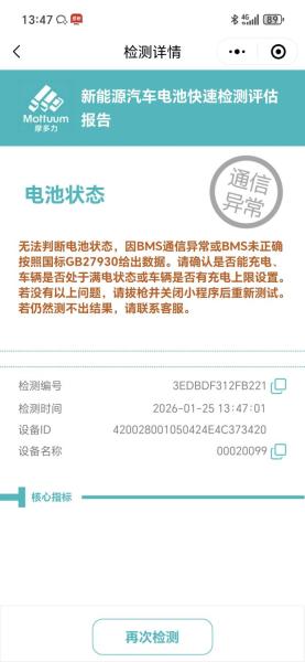 动力电池电脑检测有故障。