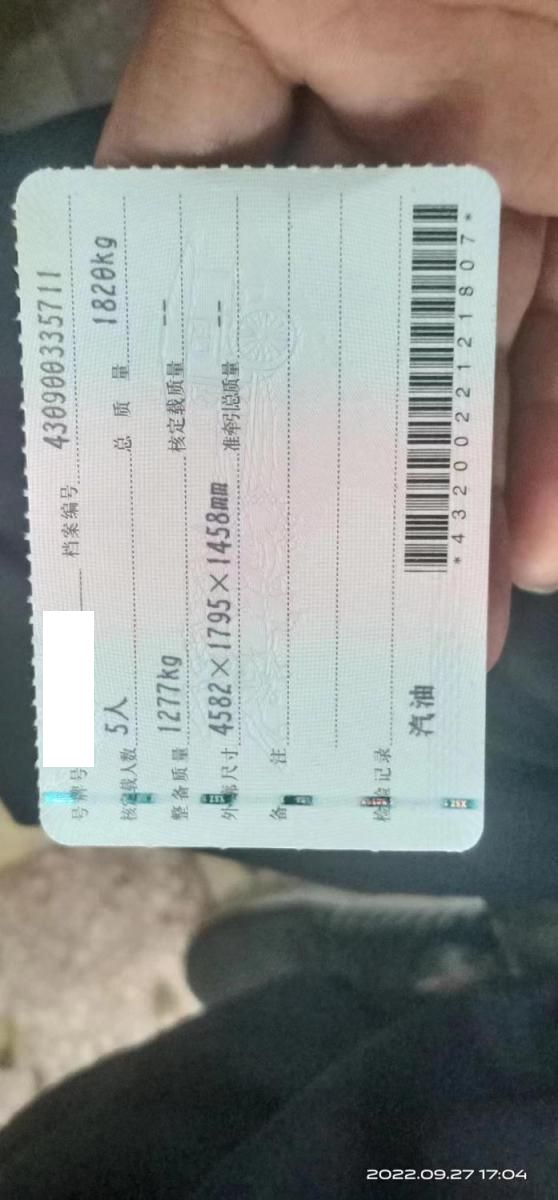 底盘号码 LVRHDFAL1KN300109 变速箱类型 手自一体