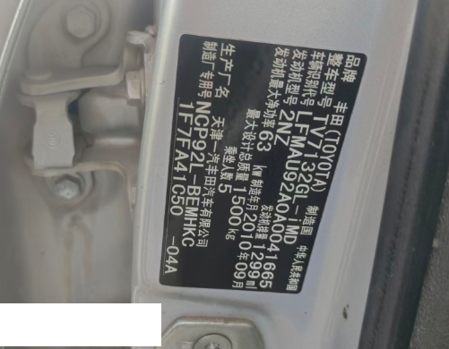 初次登记日期 2010-11-23 车辆名称 丰田 威驰