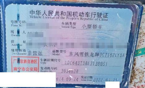 车辆归属地 广西壮族自治区南宁市 车辆停放仓库 广东省广州