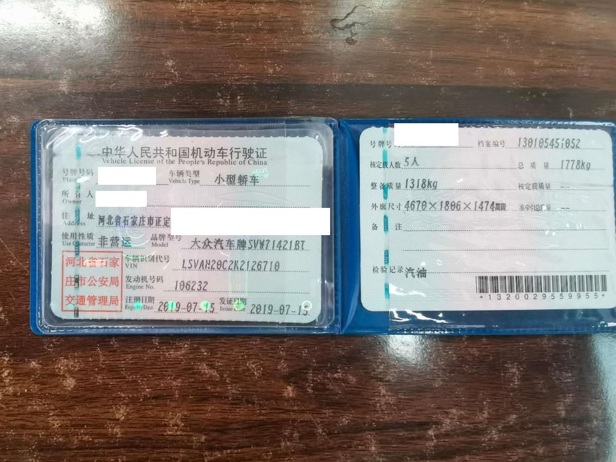 初次登记日期 2019-07-15 车辆名称 大众 朗逸