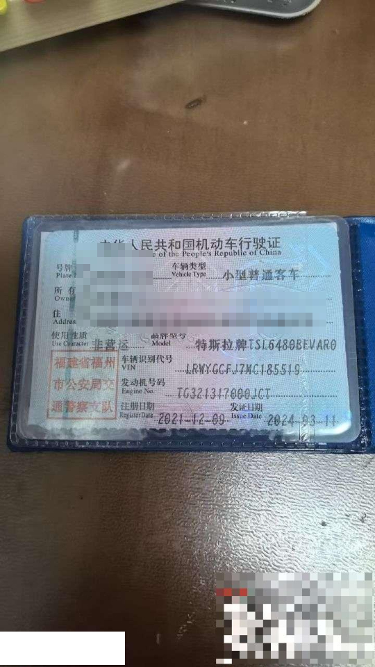 车牌号 闽****** 品牌 特斯拉