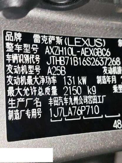 底盘号码 JTHB71B16S2637268 变速箱类型 自动