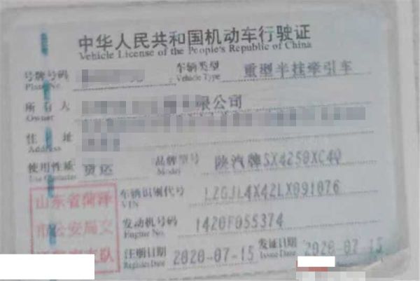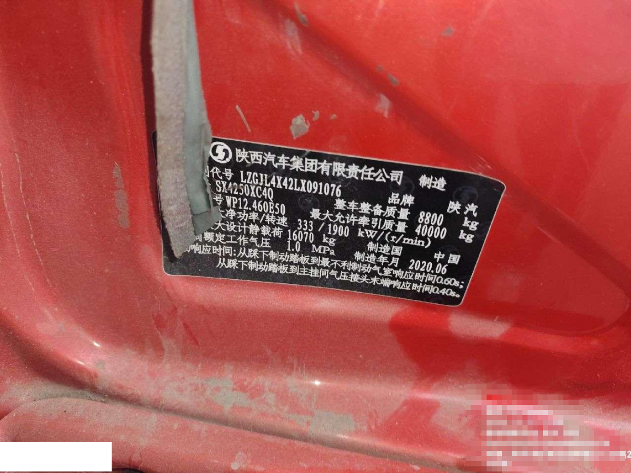 车牌号 鲁****** 品牌 陕汽牌