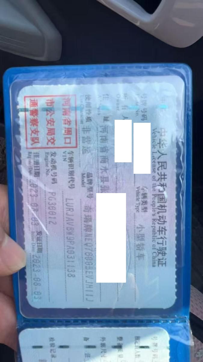 初次登记日期 2023-08-03 车辆名称 奇瑞牌