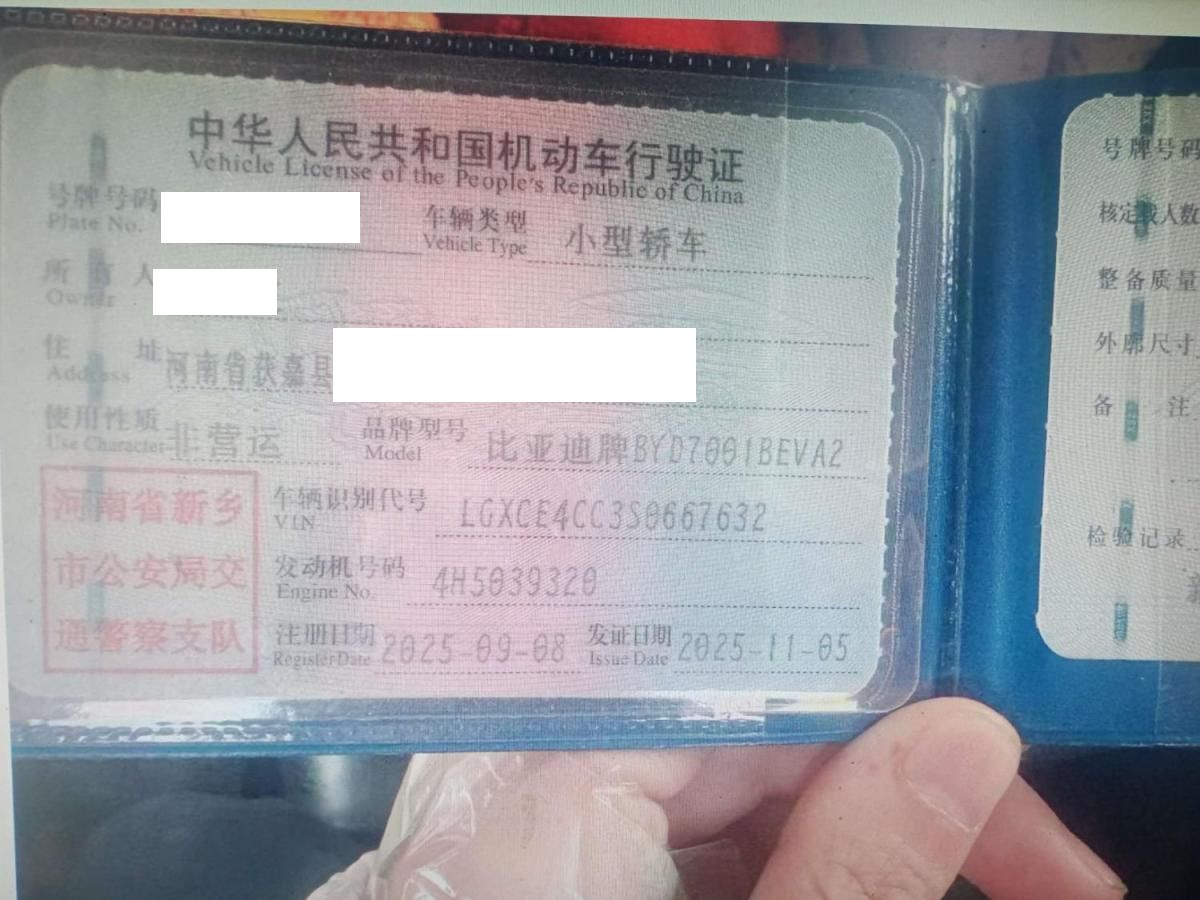 车牌号 豫****** 品牌 比亚迪