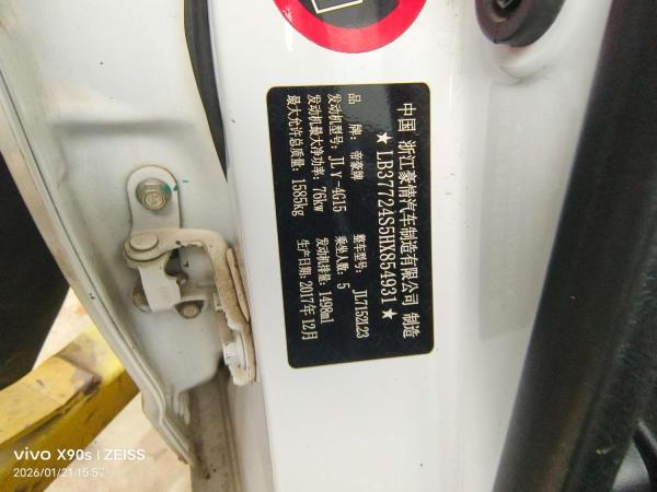 初次登记日期 2018-01-18 车辆名称 吉利汽车 远景