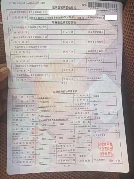初次登记日期 2024-10-24 车辆名称 五菱汽车 五菱宏光V