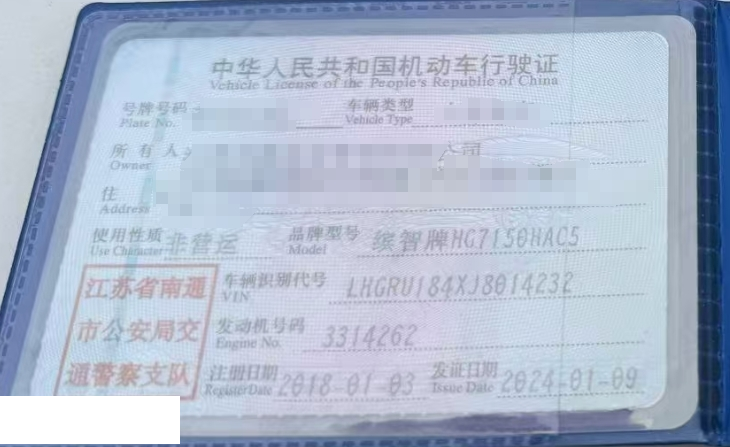 车辆归属地 江苏省南通 车辆停放仓库 上海市