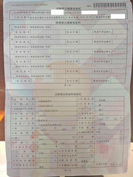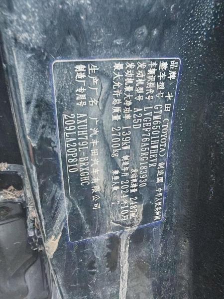 初次登记日期 2024-10-30 车辆名称 丰田 汉兰达