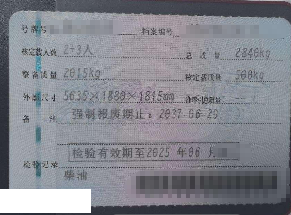 车架号是否受损 未知 使用性质 非营业