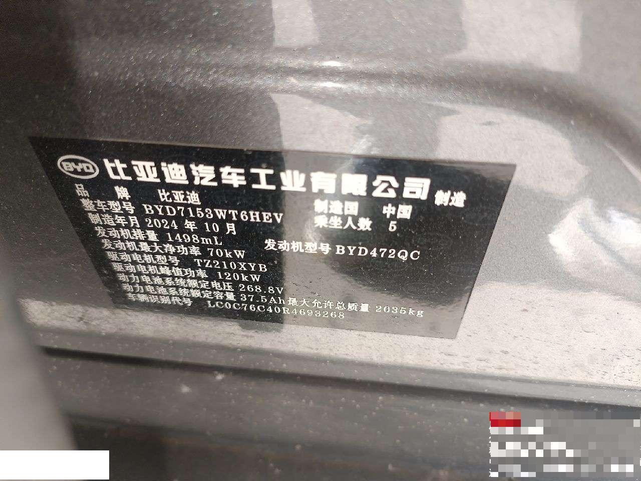 初次登记日期 2024-11-12 车辆名称 比亚迪 秦