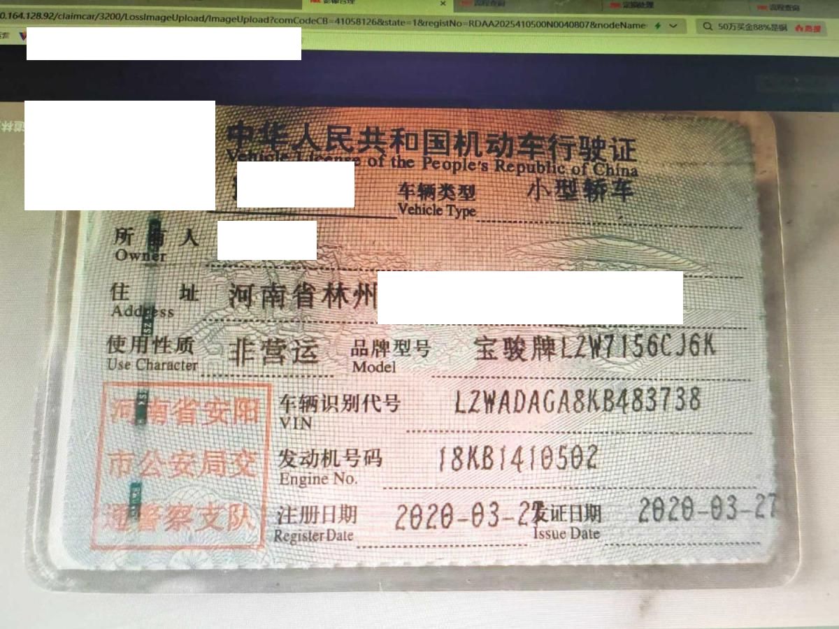 初次登记日期 2020-03-27 车辆名称 宝骏牌