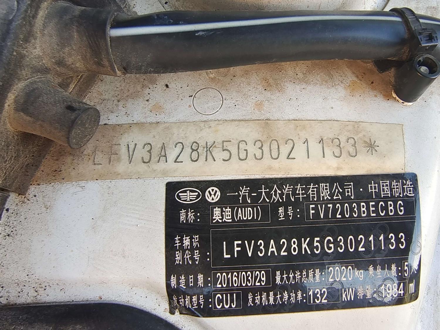 底盘号码 LFV3A28K5G3021133 变速箱类型 自动