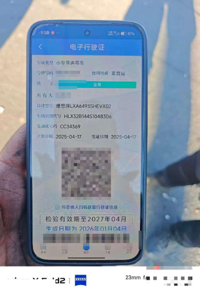 初次登记日期 2025-04-17 车辆名称 理想汽车 理想