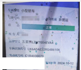 初次登记日期 2024-08-26 车辆名称 五菱汽车 宏光
