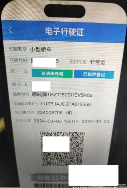 车牌号 鲁****** 品牌 哪吒
