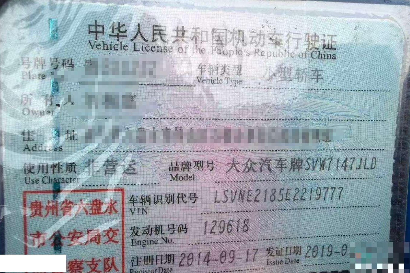 车牌号 贵****** 品牌 大众