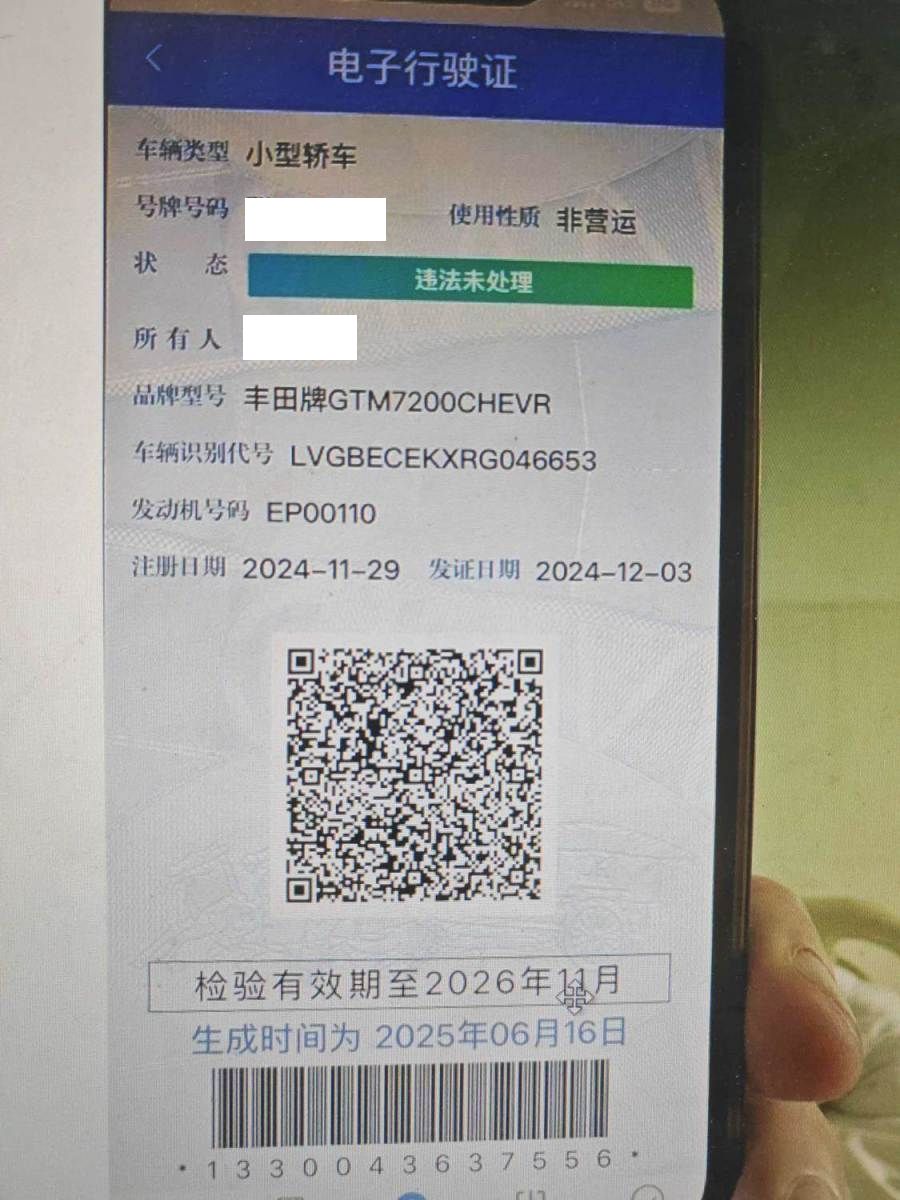初次登记日期 2024-11-29 车辆名称 丰田 凯美瑞