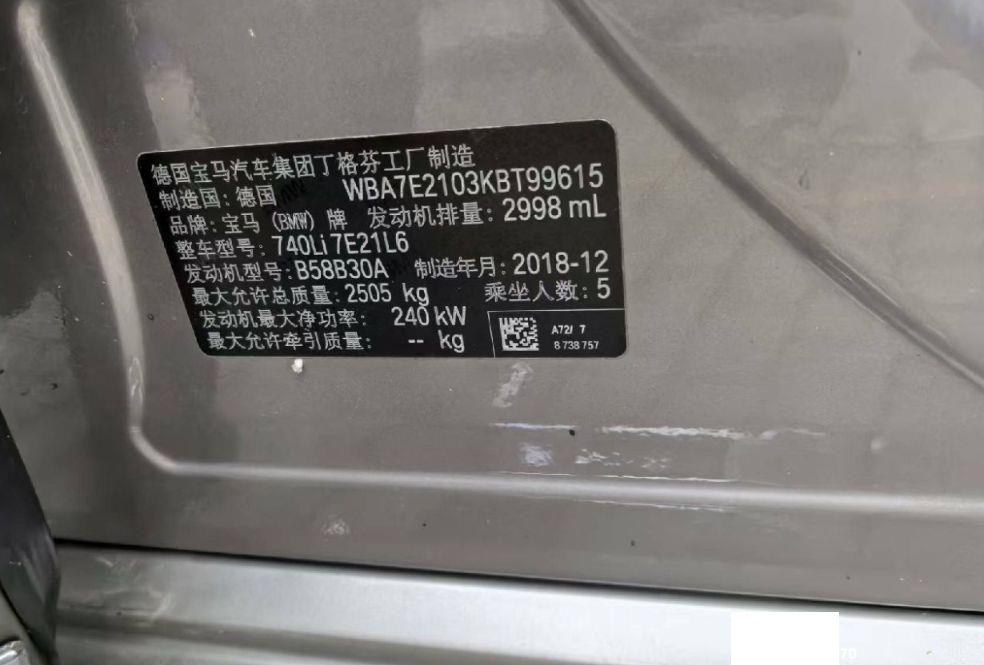 初次登记日期 2019-04-10 车辆名称 宝马7系