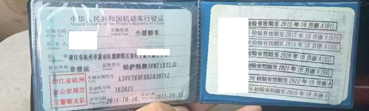 初次登记日期 2011-10-14 车辆名称 大众 Passat领驭