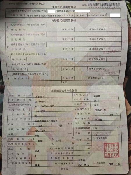 初次登记日期 2025-12-29 车辆名称 领克Z20
