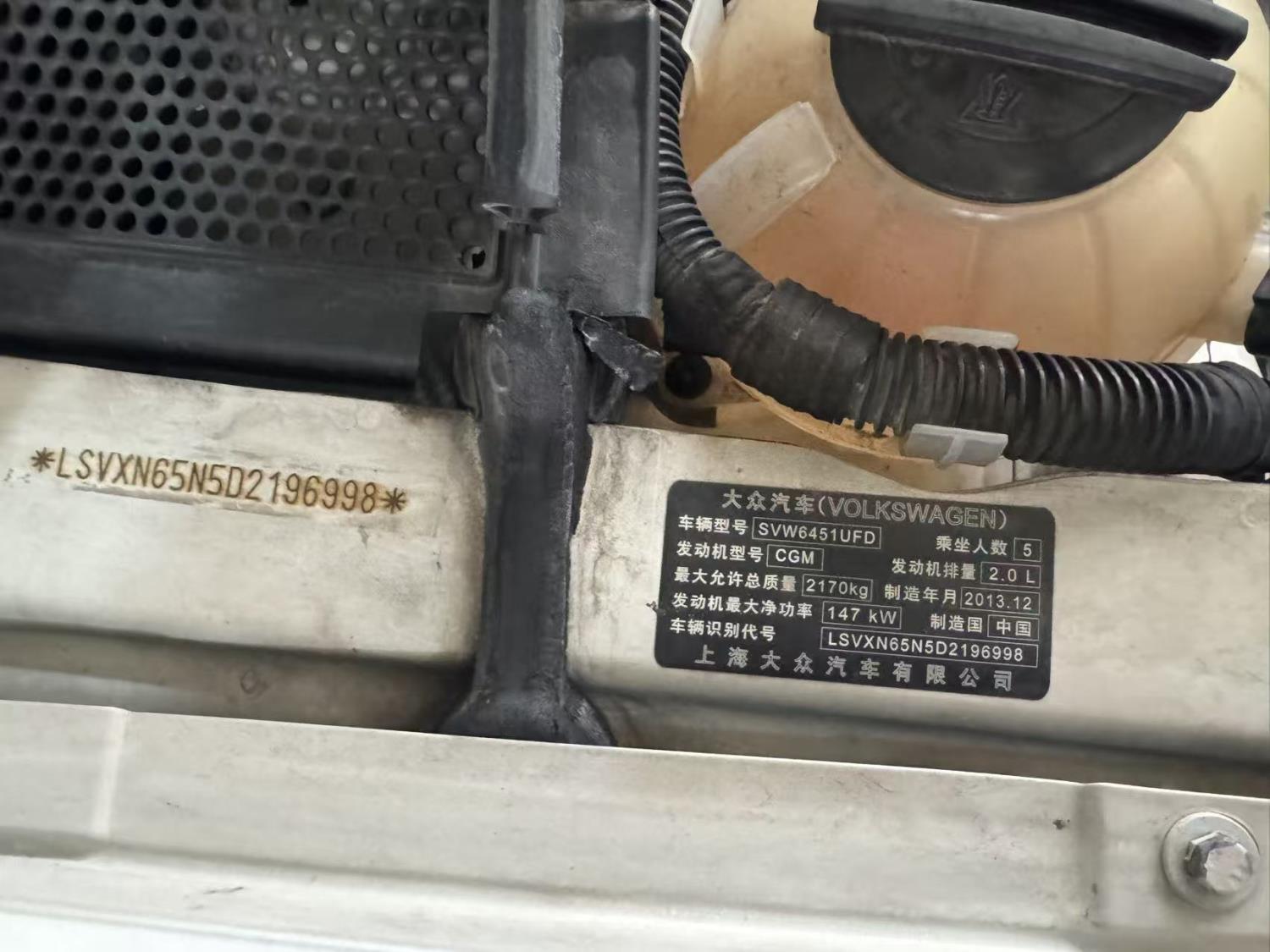 底盘号码 LSVXN65N5D2196998 变速箱类型 手自一体