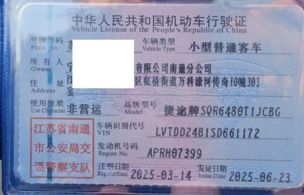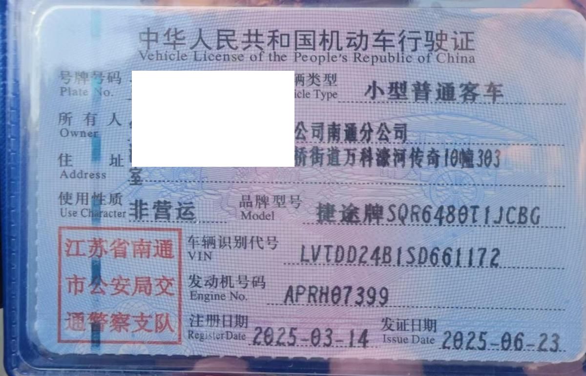 车牌号 苏****** 品牌 捷途