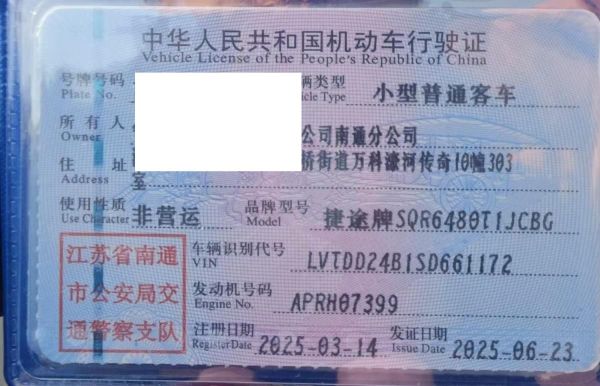 车辆归属地 江苏省南通市 车辆停放仓库 江苏省南通市南通市