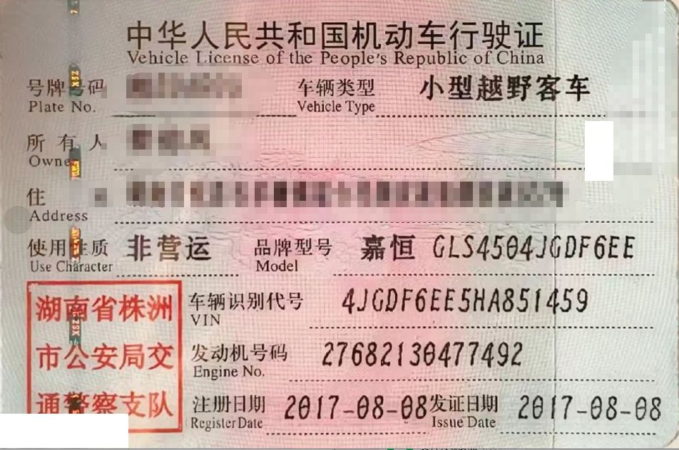 车架号是否受损 未知 使用性质 非营运