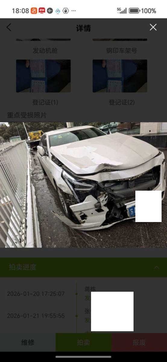 拍卖编号 N202601280015 事故类型 碰撞车