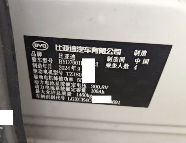 初次登记日期 2024-10-25 车辆名称 比亚迪 海鸥