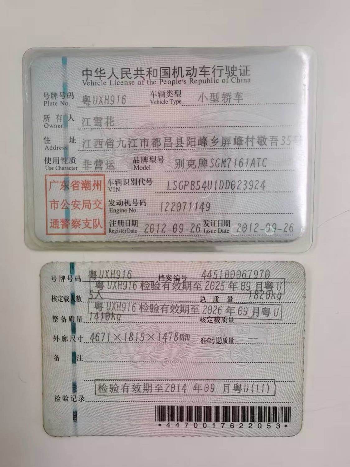 车辆归属地 广东省潮州市 车辆停放仓库 广东省潮州市潮州市