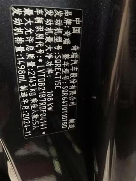 初次登记日期 2024-11-25 车辆名称 奇瑞 瑞虎