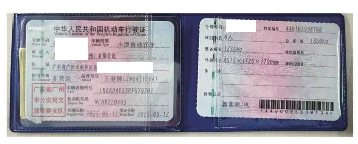 初次登记日期 2025-05-12 车辆名称 五菱汽车 五菱宏光