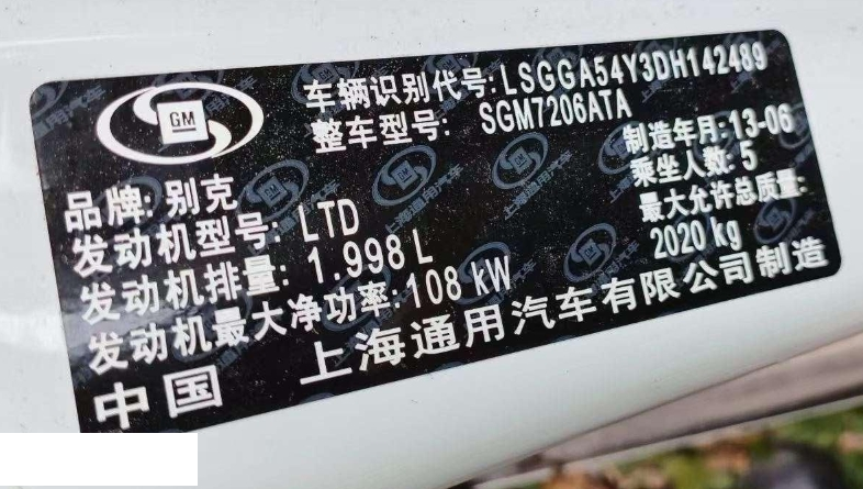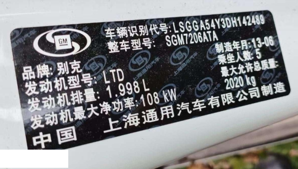 初次登记日期 2013-06-13 车辆名称 别克 君威