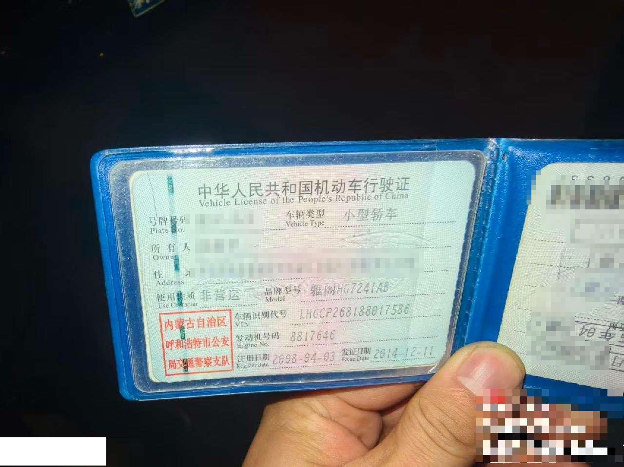 车辆归属地 内蒙古自治区呼和浩特 车辆停放仓库 内蒙古自治区呼和浩特