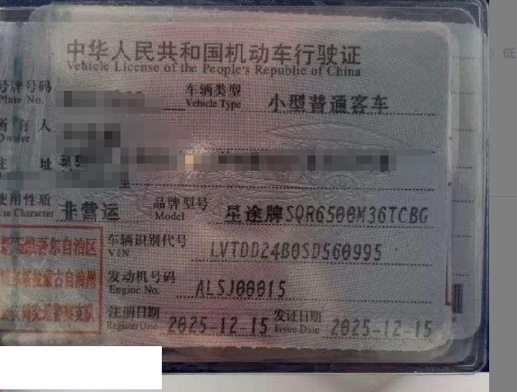 初次登记日期 2025-12-15 车辆名称 星途揽月