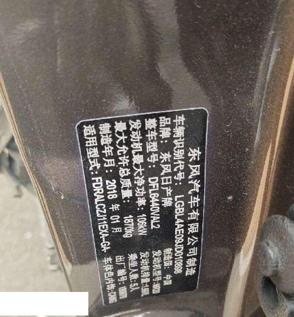 初次登记日期 2018-02-06 车辆名称 日产 逍客