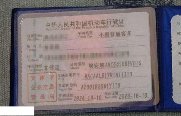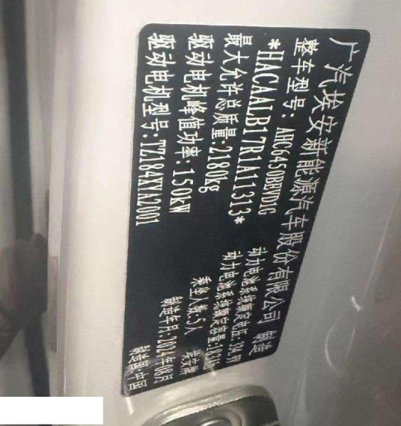 初次登记日期 2024-10-10 车辆名称 埃安 AION