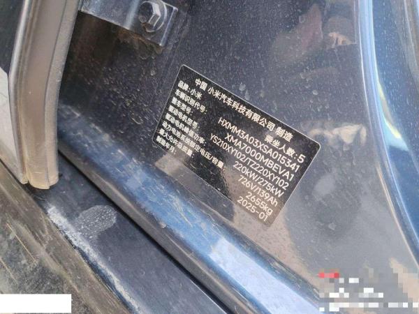 初次登记日期 2025-01-24 车辆名称 小米汽车 小米